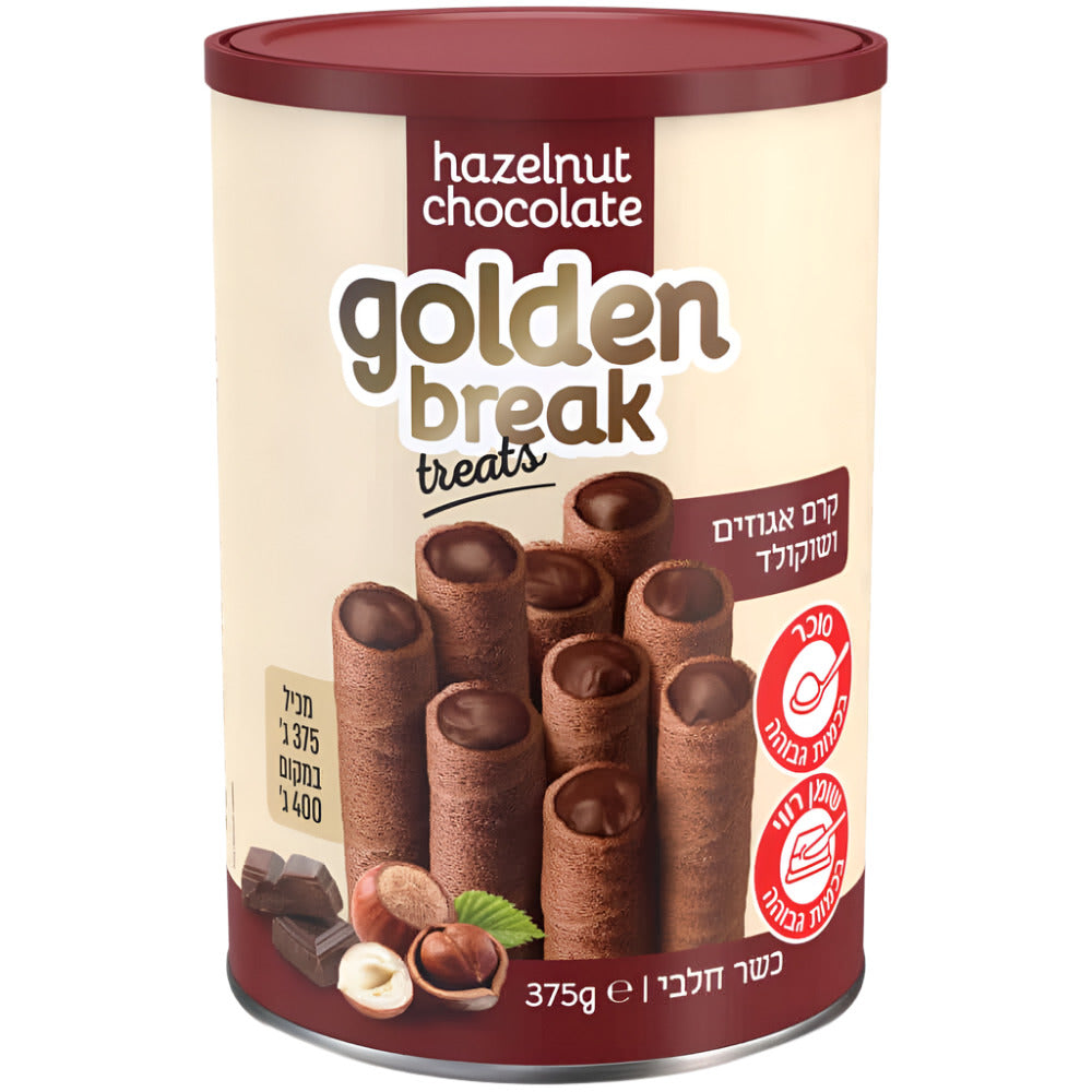 • גולדן ברייק גליליות וופלים קרם אגוזים וקקאו בטעם עשיר באריזה השומרת על טריות המוצר במשקל 400 גרם
